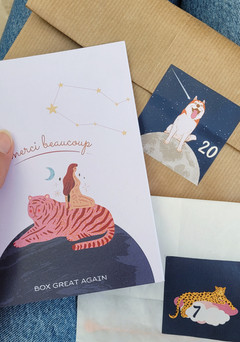 Découvrez notre calendrier "archives", une sélection spéciale de 12 ou 24 jours, regroupant tous les produits que vous avez aimés tout au long de l'année. Chaque calendrier contient une variété de jolis articles de papeterie, cosmétiques, kits DIY et produits pour la maison, le tout soigneusement présenté dans le charmant pochon "Simone de Beauvoir" de l'année dernière. Ce calendrier est parfait si vous découvrez Box Great again et que vous n'avez pas commandé les éditions précédentes.